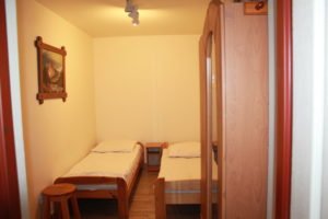 Willa nr 1 (6 osobowy) – Dom murowany. Na parterze 2 pokoje 2 osobowe, kuchnia, łazienka, ganek. Na poddasze prowadzą wąskie schody i jest tam pokój 2 osobowy. Domek znajduje się na wydzielonej z ośrodka działce o pow. 1000m, grill, ognisko, osobny wjazd z miejscami dla samochodów.