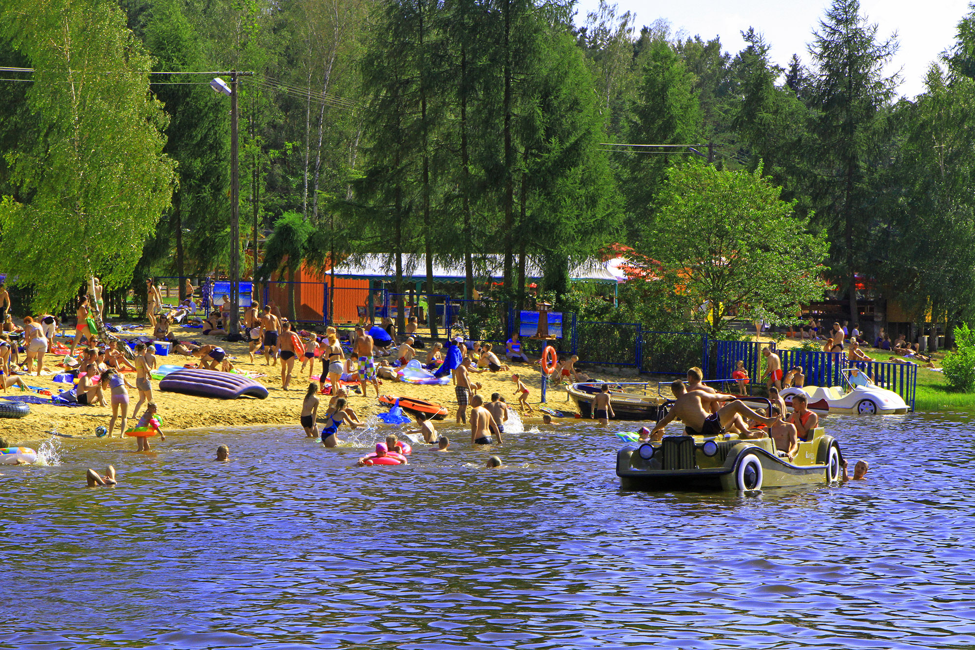 Zalew o powierzchni 5 ha na rzece Radomka. Kąpielisko strzeżone, wydzielony brodzik dla dzieci, dwie wypożyczalnie łódek, rowerów wodnych, kajaków i innego sprzętu pływającego Dwie plaże, w tym hawajska z palmami i parasolami, boiska do siatkówki plażowej. Na środku malownicza wyspa. Możliwość wędkowania.